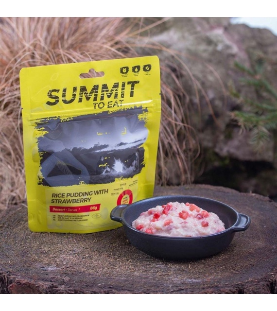 Dlhozrnná ryža, smotana (mlieko), plnotučné mlieko, cukor, jahody (3,5%). Alergény vyznačené tučným písmom.
