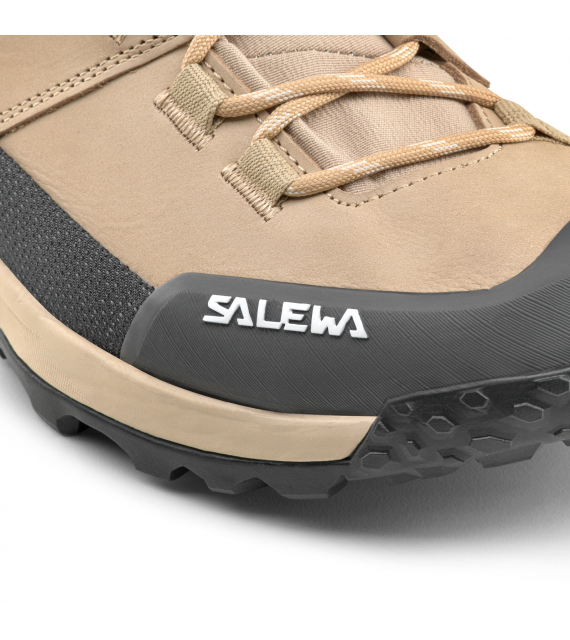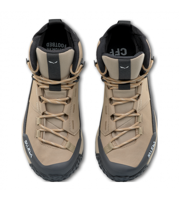 Pre dodatočnú ochranu pred nepriazňou počasia má nepremokavú a priedušnú membránu Powertex® vyrobenú bez použitia perfluorovaných alebo polyfluorovaných chemikálií ( PFAS ) a jej pevný a pružný zvršok z talianskej nubukovej kože je vystužený vnútorným ovíjacím systémom Kevlar® 3F v oblasti členku.