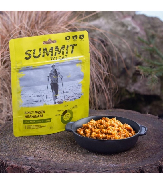 Pochutnajte si na vynikajúcich pikatných cestovinách Arrabiata. Obľúbené cestoviny v pikantnej paradajkovo-cesnakovej omáčke, vhodné aj pre vegetariánov, predstavujú plnohodnotné teplé jedlo pre akékoľvek kempovanie alebo dobrodružstvo v horách.