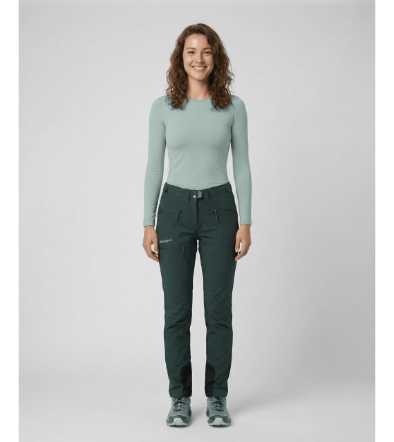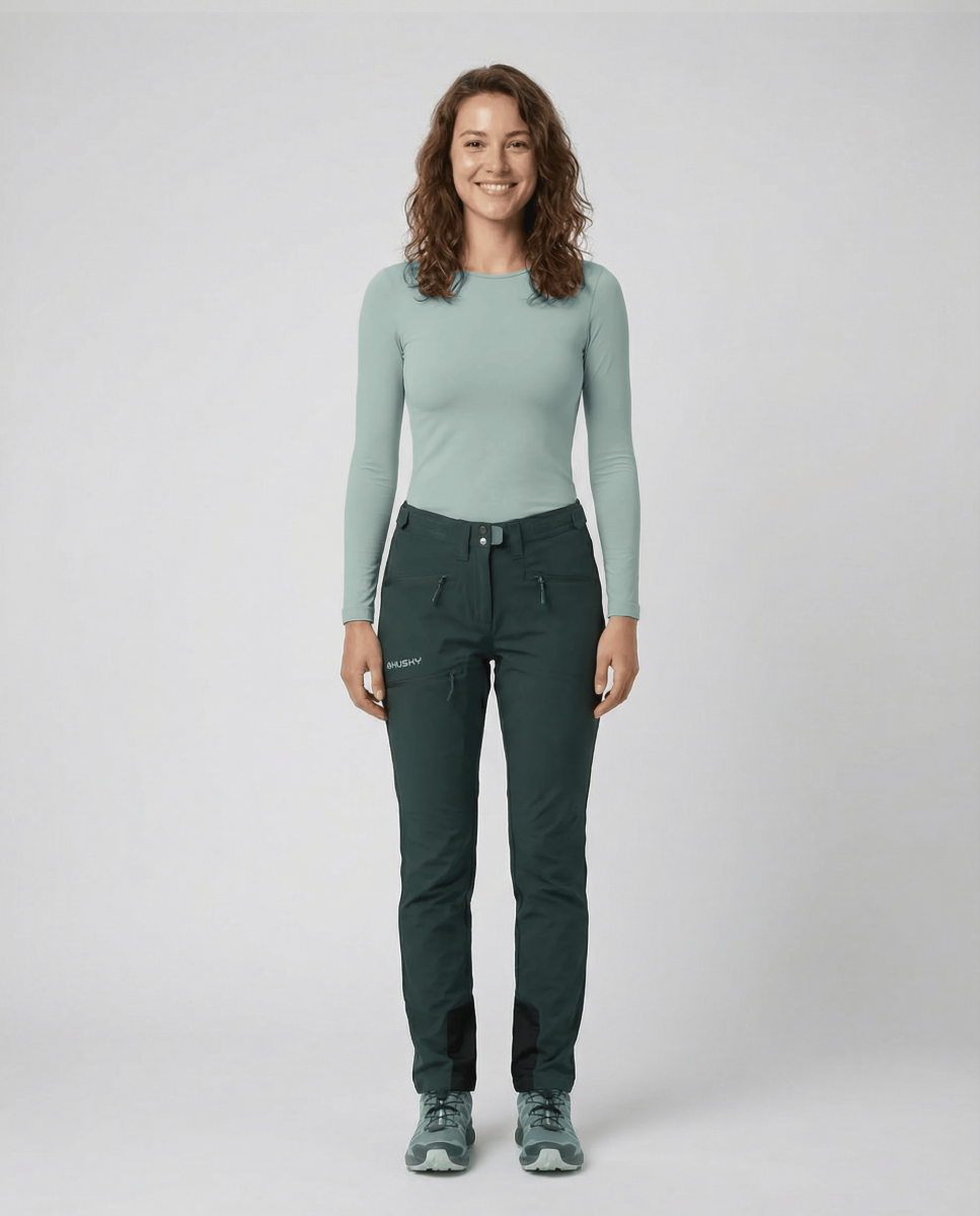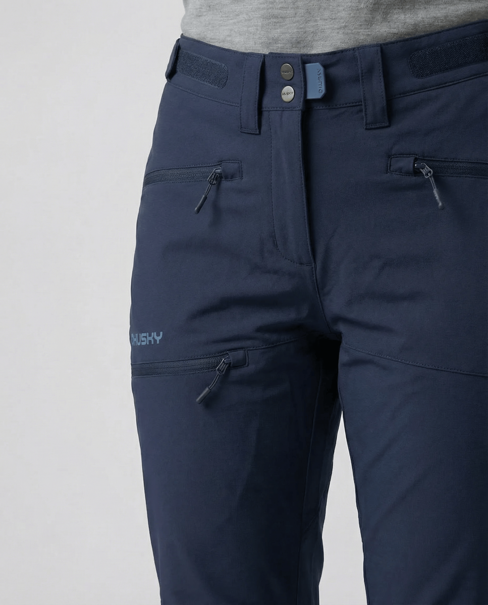Silnější odolné dámské outdoor kalhoty Kabuki L z technické tkaniny bez obav oblékni na vysokohorskou turistiku v náročných podmínkách. Prodyšný materiál a propracovaný střih ti umožní pohodlný pohyb i při celodenním nošení. Pro nepromokavost použita membrána Husky Tech Stretch Plus s parametry 20 000 vodního sloupce, která tě v kombinaci s kvalitní DWR úpravou udrží v suchu a teple.