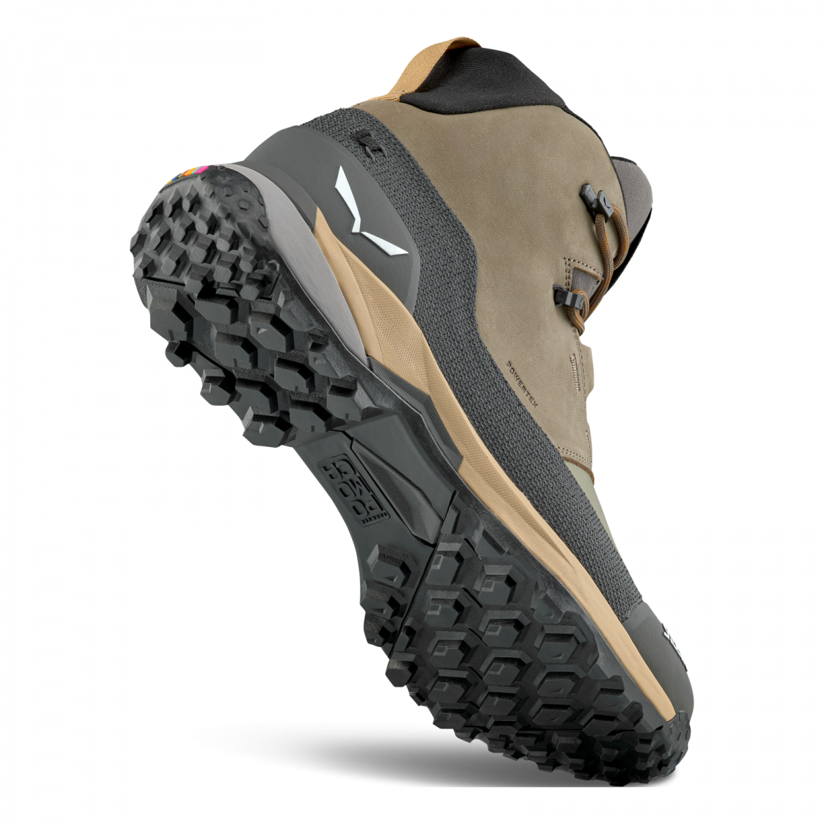 Jeho zvršok z odolnej, ale pružnej talianskej nubukovej kože je vystužený integrovaným ovíjacím systémom Kevlar® 3F v oblasti členku a hybridným textilným lemom odolným proti oderu, zatiaľ čo jeho vodeodolná a priedušná membrána Powertex® vás ochráni pred nepriazňou počasia bez použitia perfluórovaných .