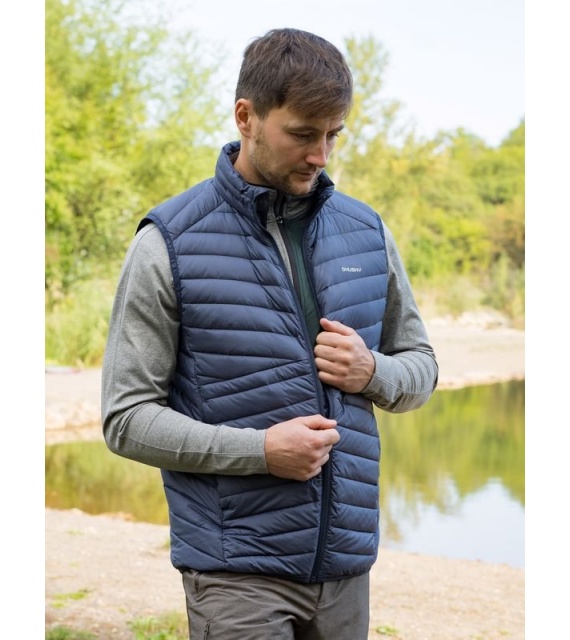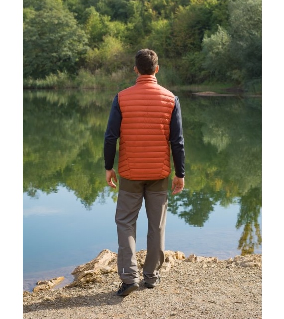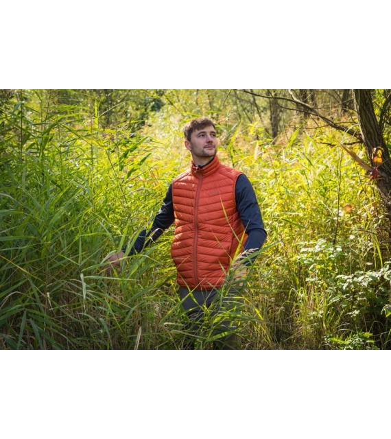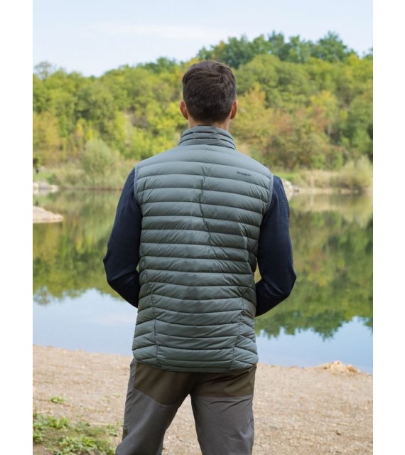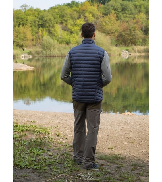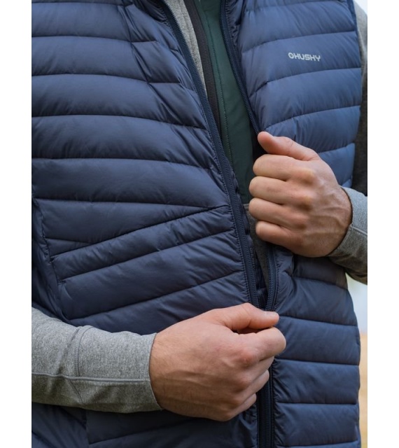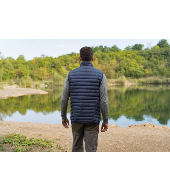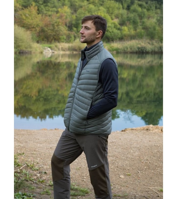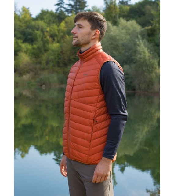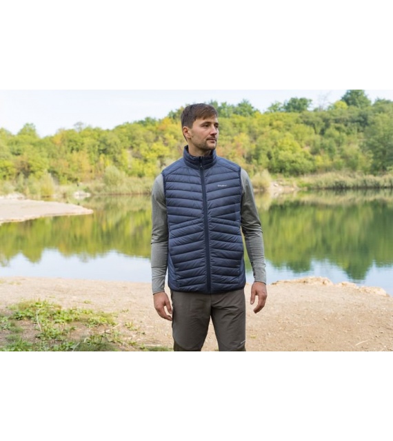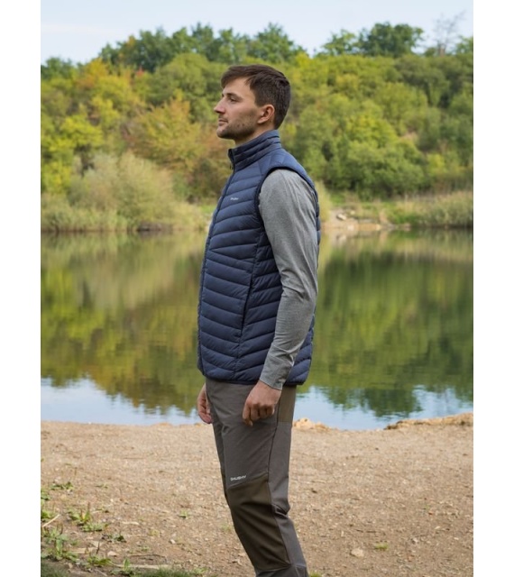 Ultraľahká pánska páperová vesta na zips vhodná na rôzne outdoorové aktivity v chladnejších dňoch.