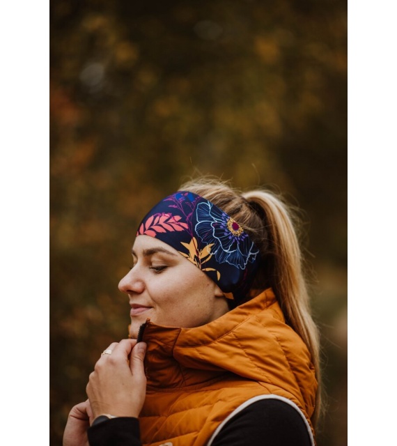 Športová čelenka s kvetinovým motívom. Elegantný kúsok, ktorý zahreje a hodí sa do zbierky čeleniek všetkých milovníčok kvetov.