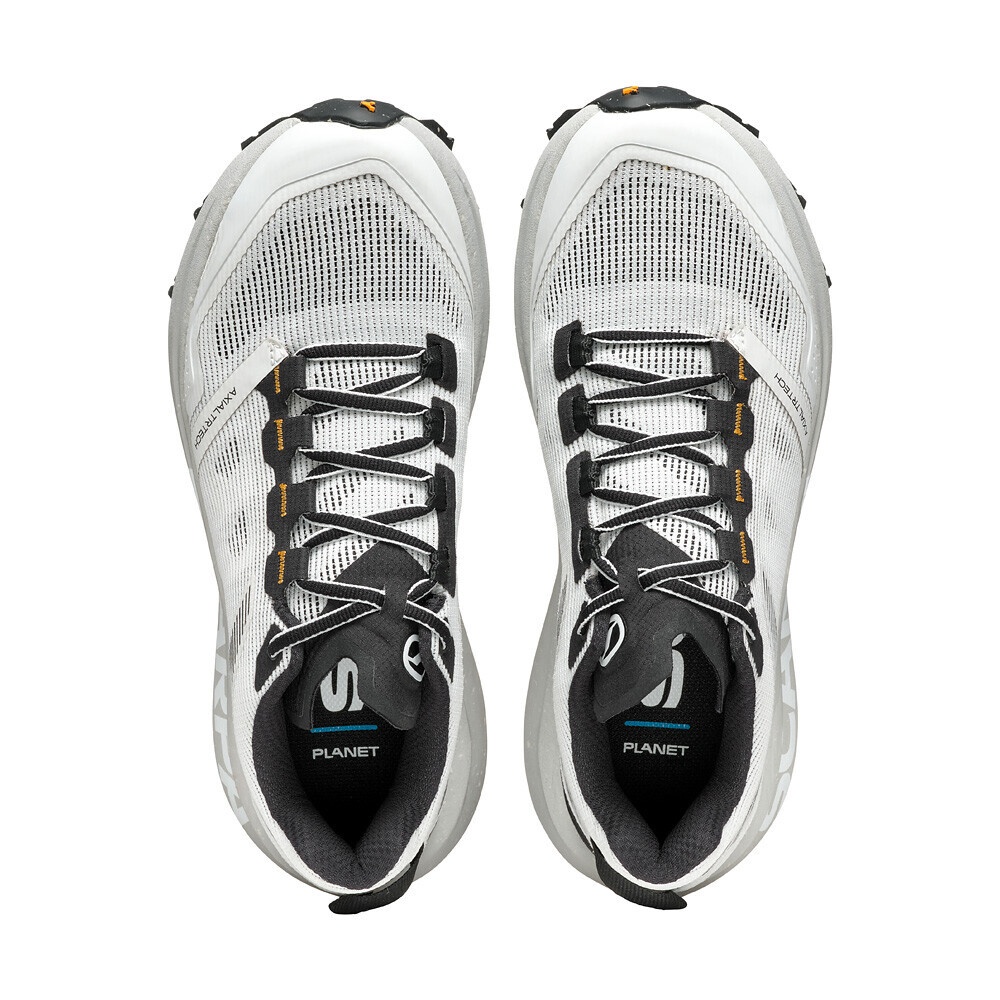 Spin Planet, tento model s velice příznivou váhou 260 g je určený na běhy tipu ultra trail, skymarathon a dlouhé tréninkové výběhy. Širší střih v přední části pro přirozené rozprostření prstů a pohodlnější usazení nohy. Nízký drop 4mm pro co nejvíc přirozený pohyb. Svrchní mešový materiál, který má vysokou prodyšnost je zpevněný technologií EXOskeleton a je 100% recyklovaný, mezipodešev EVA (z 45% recyklovaný materiál) pro maximalní tlumení došlapu a podešev Presa jsou garancí bezpečného pohybu v terénu.