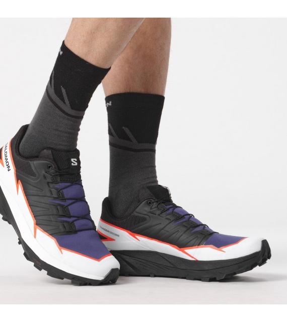 THUNDERCROSS je trailová obuv pre dynamický, odpružený krok s výnimočnou priľnavosťou a presným držaním nohy. Je vybavená agresívnymi 5mm výstupkami, ktoré zvládnu akýkoľvek terén, bez ohľadu na to, aký zákerný, technický alebo jednoducho len nepríjemný môže byť. Boli vyvinuté vo francúzskych Alpách, vyskúšané a otestované na všetkých typoch tratí od kopcovitého terénu až po kamenité svahy alebo klzké singltreky.